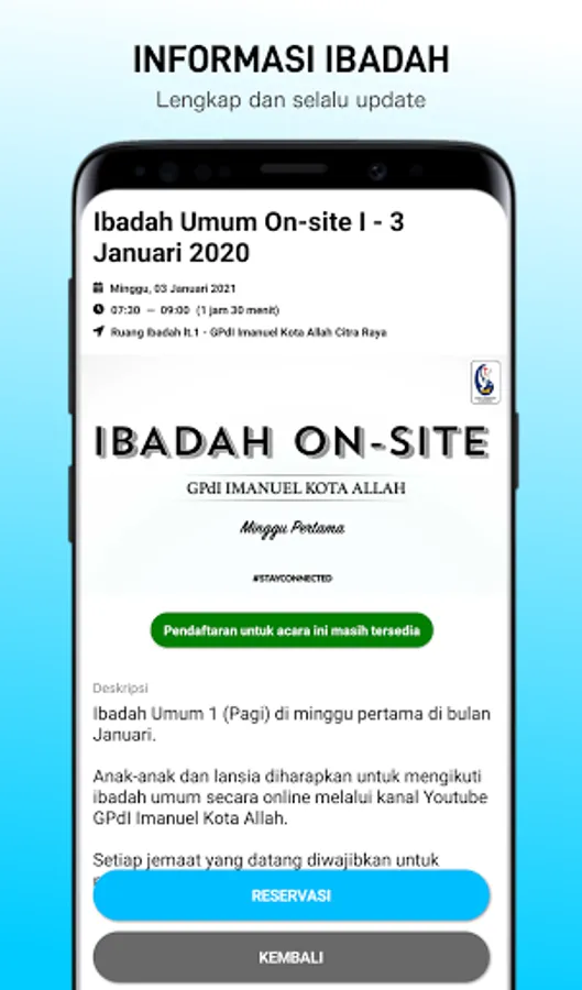 The GPdI IKA Mobile application is a special application for the Pentecostal Church congregation in Indonesia (GPdI) Imanuel Kota Allah Citra Raya, Tangerang.