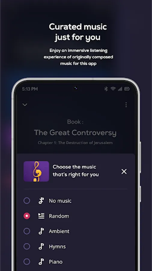 - Choose from a diverse range of musical backdrops such as piano, hymns, and ambient melodies.