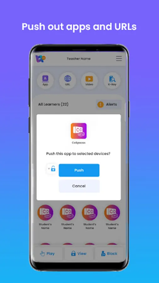 Share content with your students, instantly and in real time. Push any application. You can even guide your students experiences from your own teacher tablet!