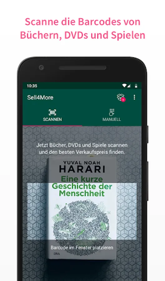 Sell your old books, DVDs or games at the best price. With the app you can scan the barcodes of the items and compare the prices of the largest recommerce portals in a few seconds.