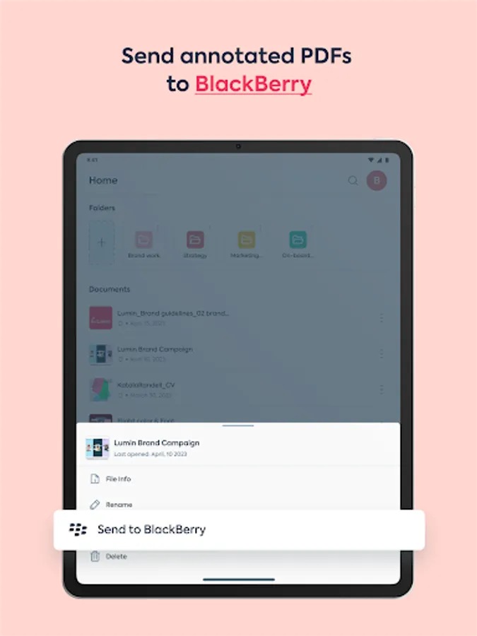 Say goodbye to manual printing and scanning, as you can now handle all your document editing needs on the go with Lumin PDF for BlackBerry.