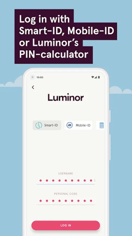 Входите в приложение с помощью Smart-ID, Mobiil-ID или калькулятора PIN-кодов Luminor. Всегда защищайте свой телефон с помощью блокировки экрана.
