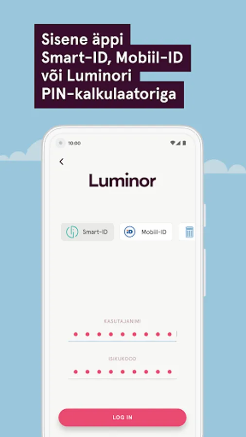 Sisene äppi Smart-ID, Mobiil-ID või Luminori PIN-kalkulaatoriga. Kaitse oma telefoni alati ekraanilukuga.