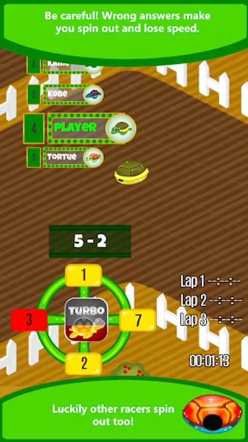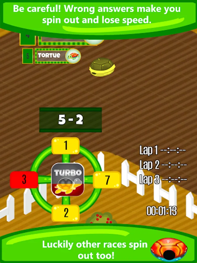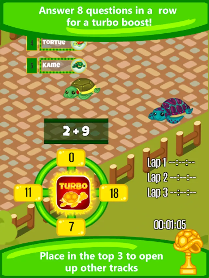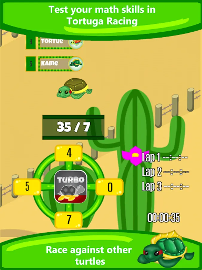 Race against other turtles by mastering addition, subtraction, multiplication, and division. The more questions you get right the faster you'll go! Choose one or multiple operands for an even more challenging experience.