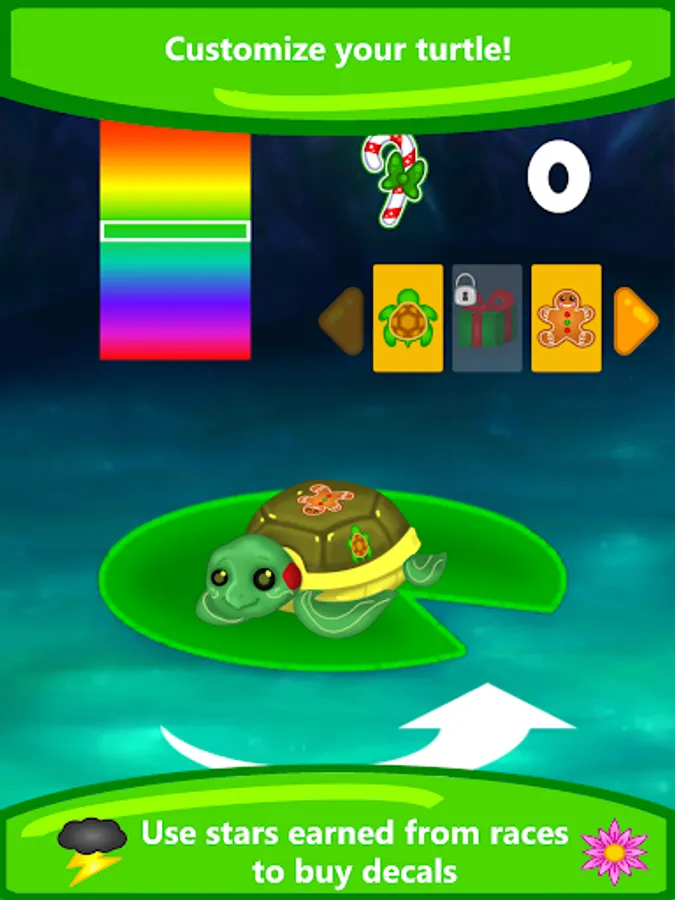 Place in the top three to earn stars, which you can use to customize your turtle with decals. You'll have to place first to unlock the next map!