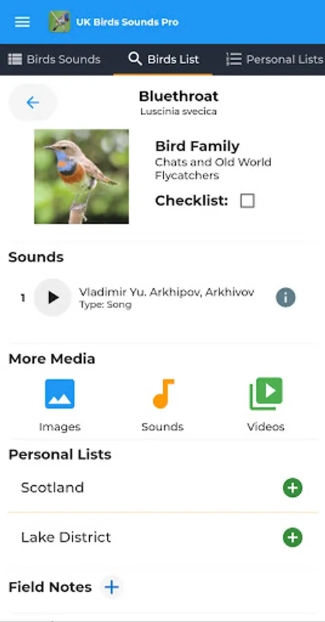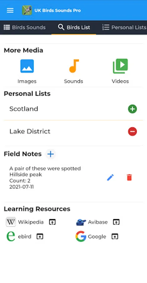 Listen to all the beautiful bird songs offline and create lists and field notes too.
