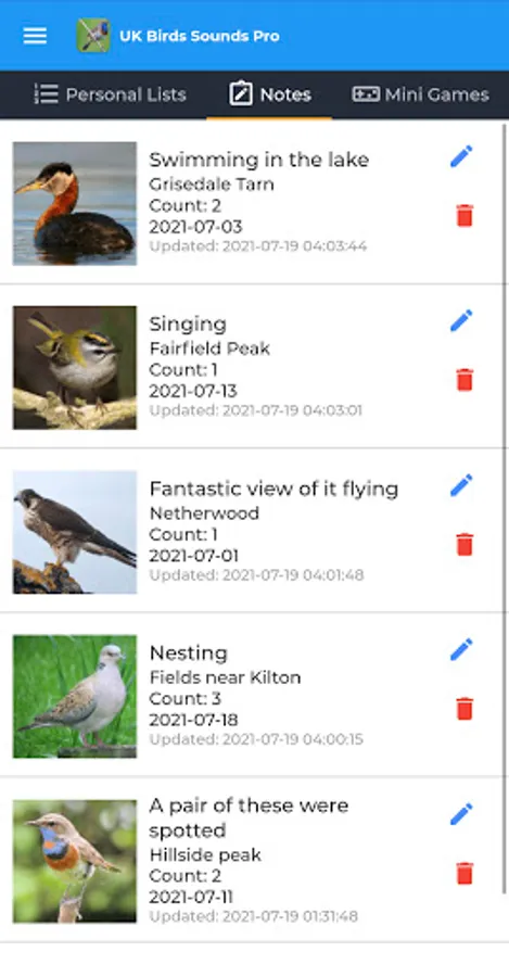 Fields notes can also be created! Allowing you to document each bird sighting.