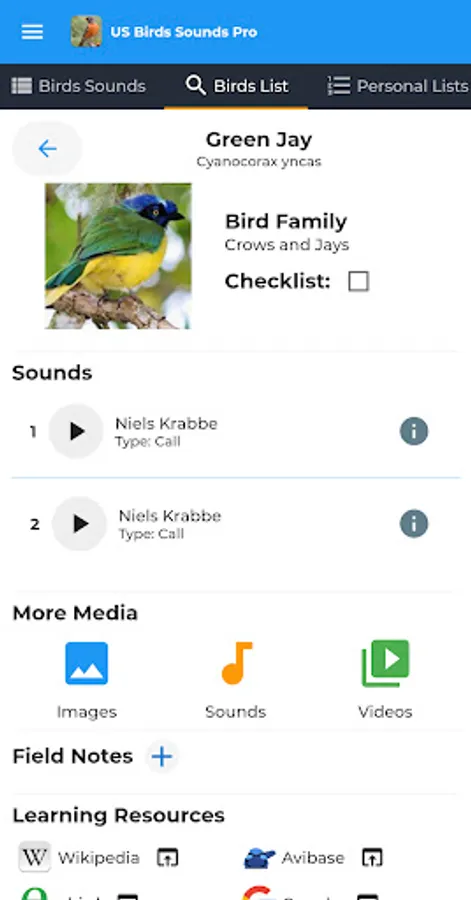 Listen to all the beautiful bird songs offline and create lists and field notes too.