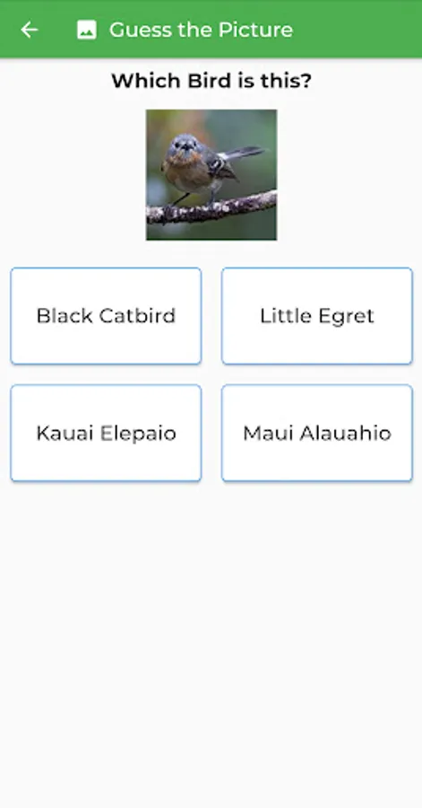 Mini games are also included helping you to learn the different birds found in this app: Guess the Picture, Guess the Sound and Guess the Name.