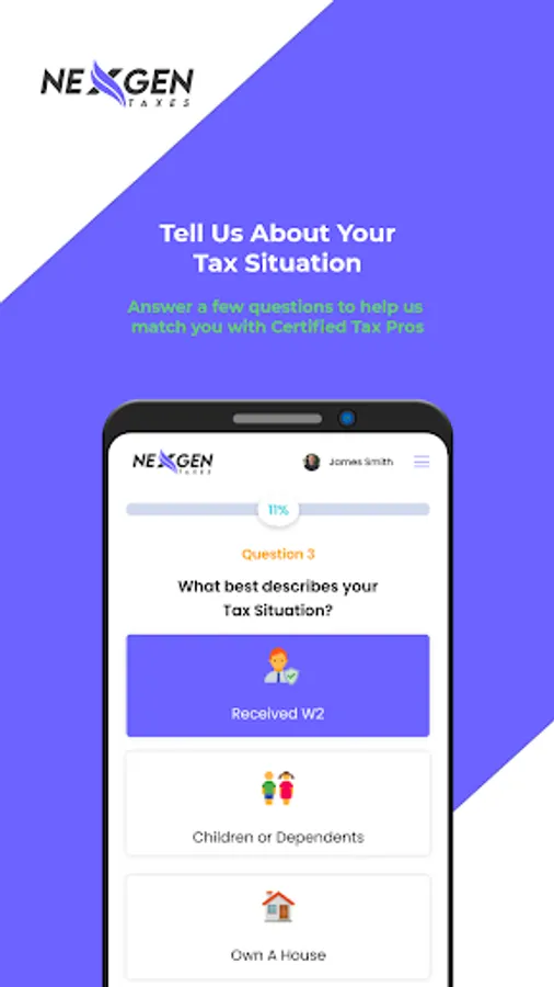 Getting the taxes done with NexGen Taxes is a breeze with top-of-the-line secure chat, screen sharing, DocuSign, and video chat capabilities. When you start your request NexGen Taxes platform calculates an upfront price quote by assessing your tax situation and pairing you with credentialed tax professionals specializing in your tax position. Based upon their profile and other users feedback, you chose who you want to work on your tax filing.