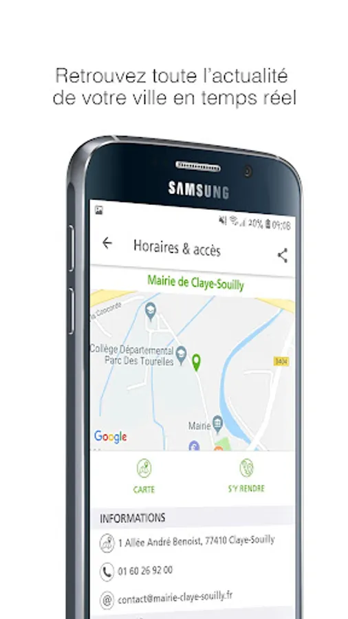 The application of the city of Claye-Souilly offers news, the agenda of events, useful numbers of the services of the town hall, real-time notifications and much more ...: stay connected with your city!