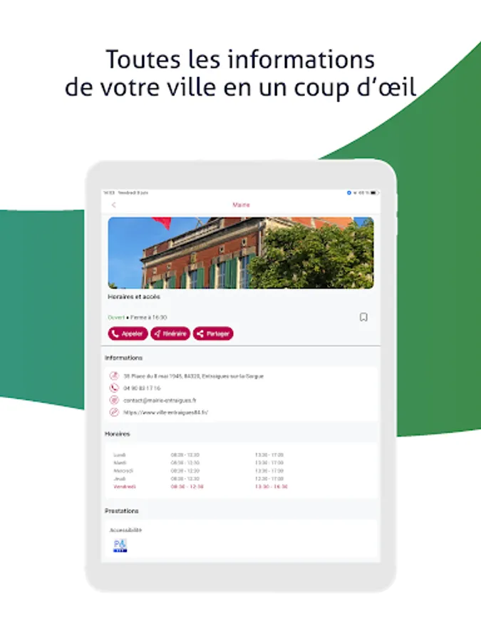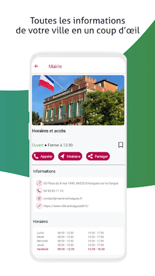 The application of the municipality of Entraigues sur la Sorgue offers you news, the calendar of events, real-time notifications and much more:
