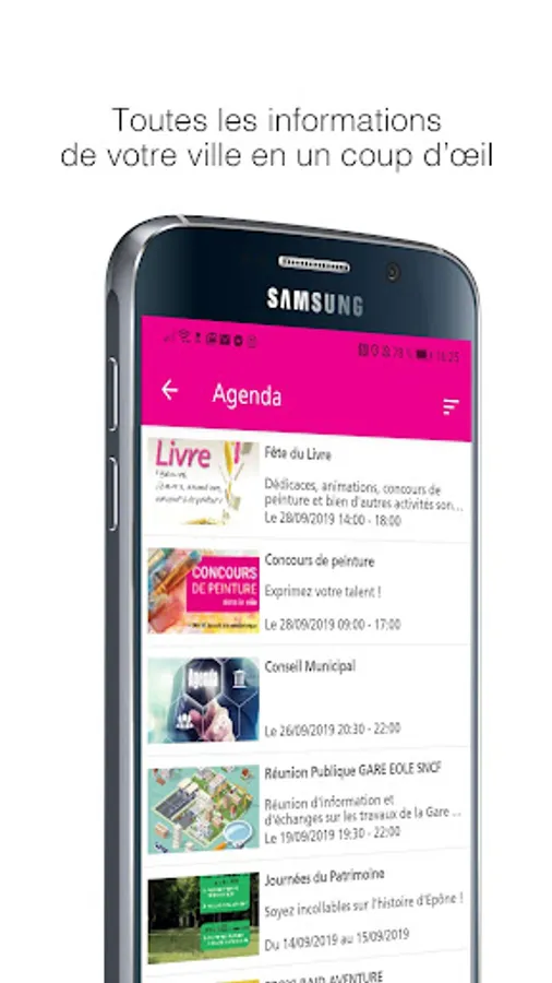 The official application of the city of Epône offers news, the agenda of events, useful numbers of the services of the town hall, real-time notifications and much more ...: stay connected with your city!