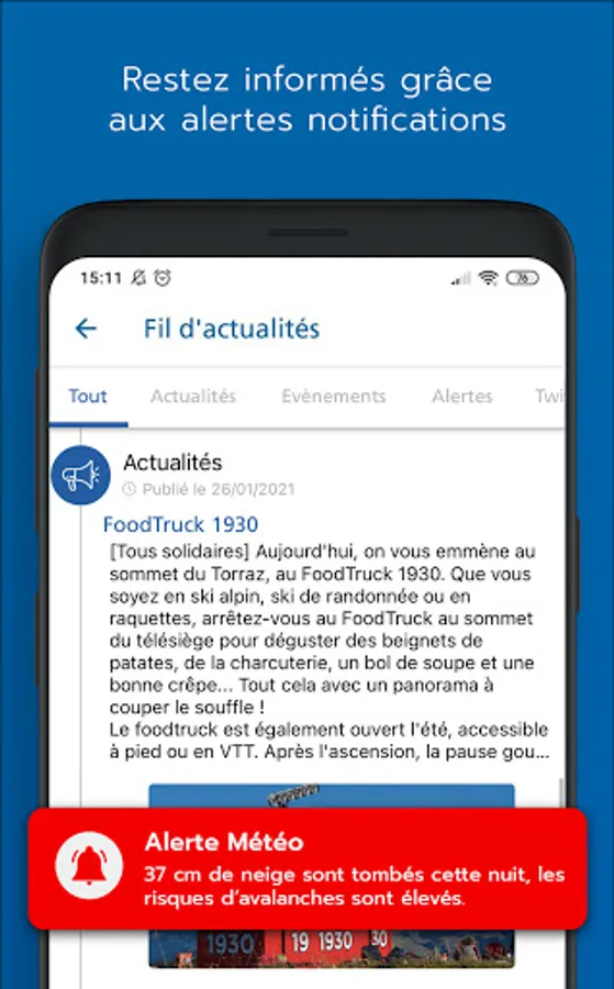 PRACTICAL: quick access to all the essential information of your favorite resorts: detailed weather forecast, area map, opening conditions, news and events ...