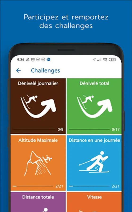 FUN: with the Ski + module, record your performance (GPS tracking): elevation, distance, speed, altitude, GPS track… Locate the closest stations and complete the challenges launched on each area. More than 100 challenges await you on the slopes and there is something for all tastes: 1st glide challenge, confirmed, hothead, performance ...