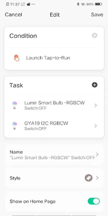 -Change the color or brightness of all your lights to match your mood or your activity.