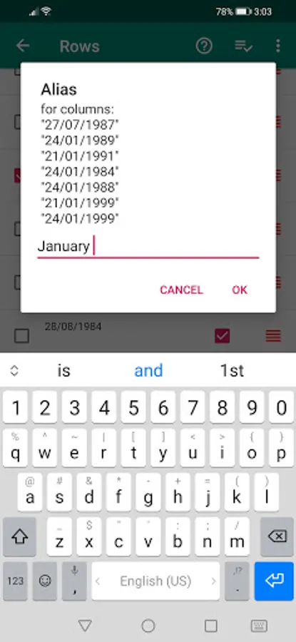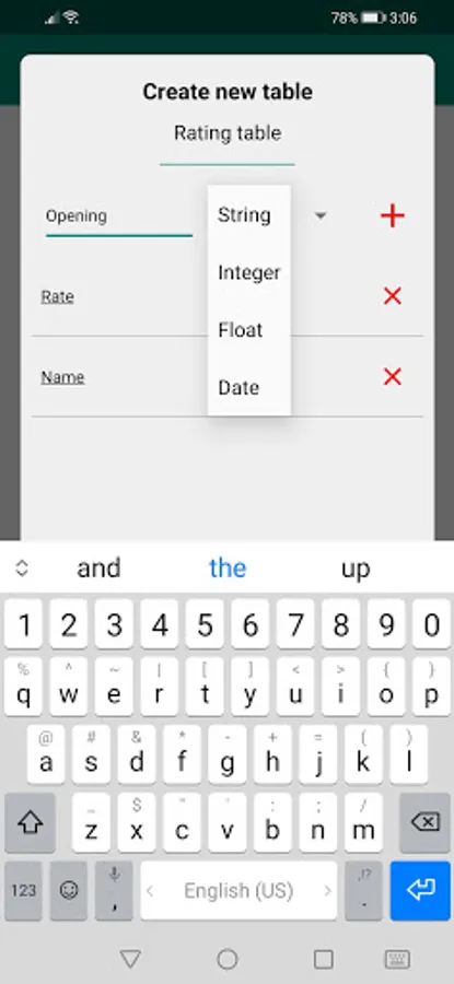 To make learning the program easier, there is a built-in test table, which you can change or even delete, and then restore the test table from the menu with one click