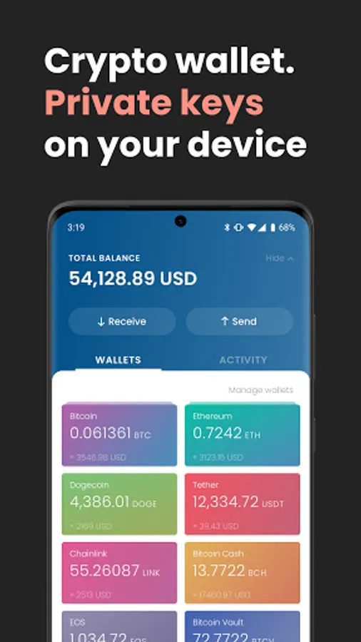 Security is a primary focus of our crypto wallet: private keys are kept exclusively on your device. All your crypto assets are protected with high level encryption and cryptography. All funds are held in cold storage and you always remain the sole owner of your cryptocurrency.
