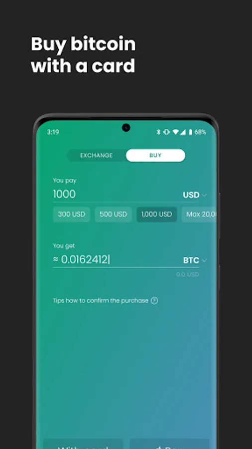 1. Buy Bitcoin (BTC), Bitcoin Cash (BCH), Ethereum (ETH), Tether USD (USDT), USD Coin (USDC), Dogecoin (DOGE) and more via debit or credit card.