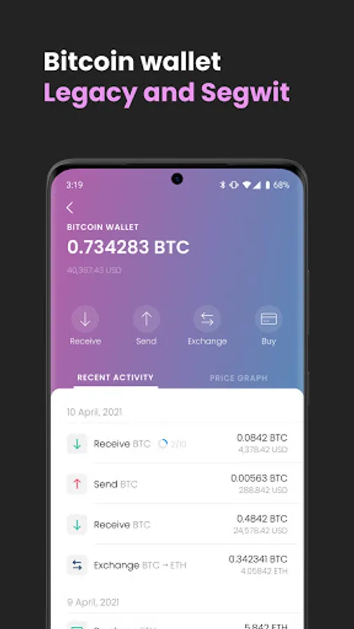 We’ve created the most user-friendly cryptocurrency wallet. Maximum simplicity and consistency of each element is our mantra.