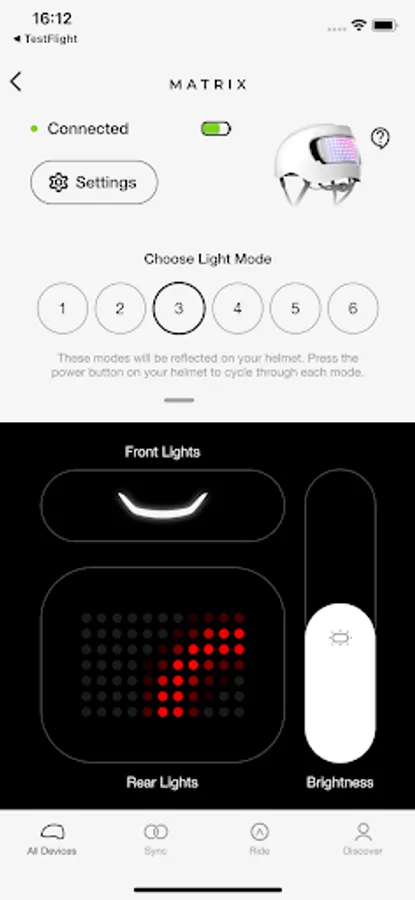 Customize lights on your helmets and change other settings such as turn signal beeping frequency or sensitivity on your warning lights.