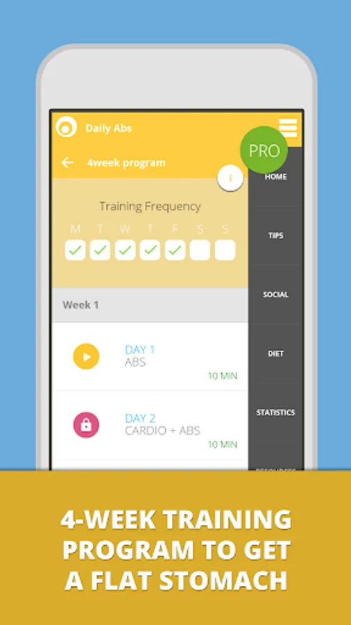 Unlock the 4-week training program with cardio + abs toning workouts to maximize the fat burning effect and get flat toned abs as soon as possible.