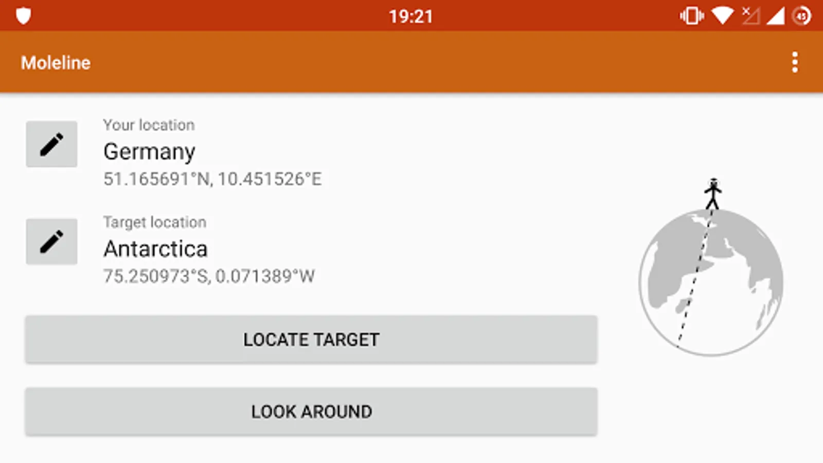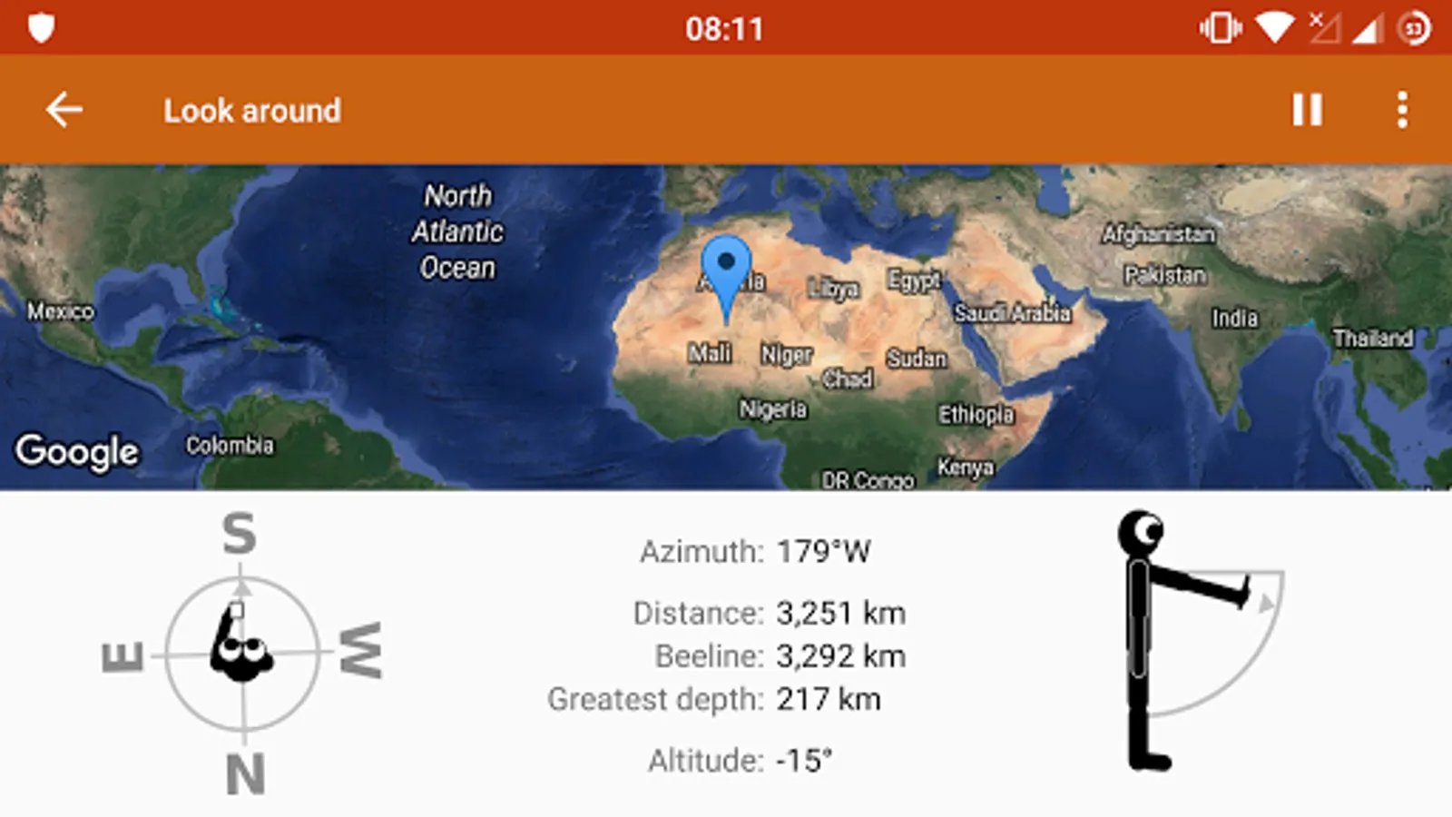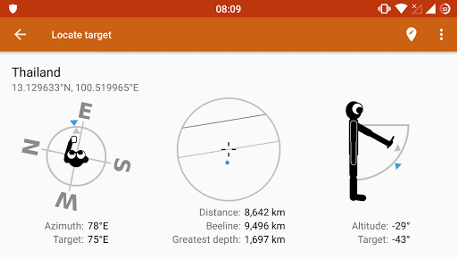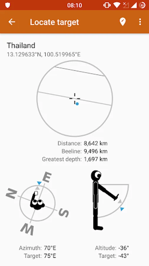 Ordinary compass apps can only show you the direction to another place in two dimensions -- the direction of the beeline above ground. But how would you know at what angle to start digging if you wanted to dig the shortest possible tunnel through Earth from Germany to Hawaii? With this app I want to help people remember that the Earth is approximately sphere-shaped.