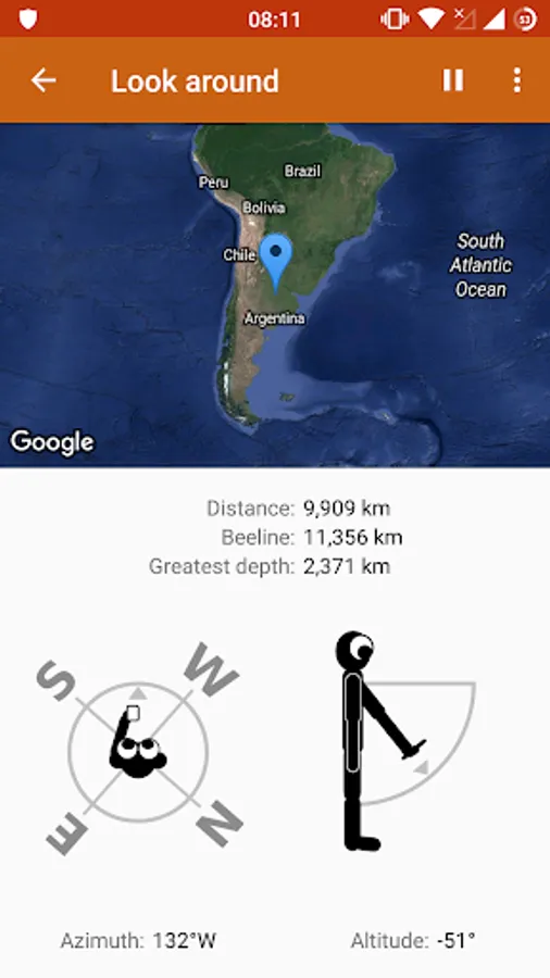 - Move your phone around. Imagine a tunnel straight through the earth in the direction that your phone is currently pointing. A map shows you the place that lies at the end of this tunnel.