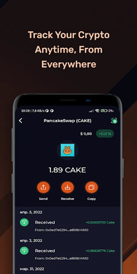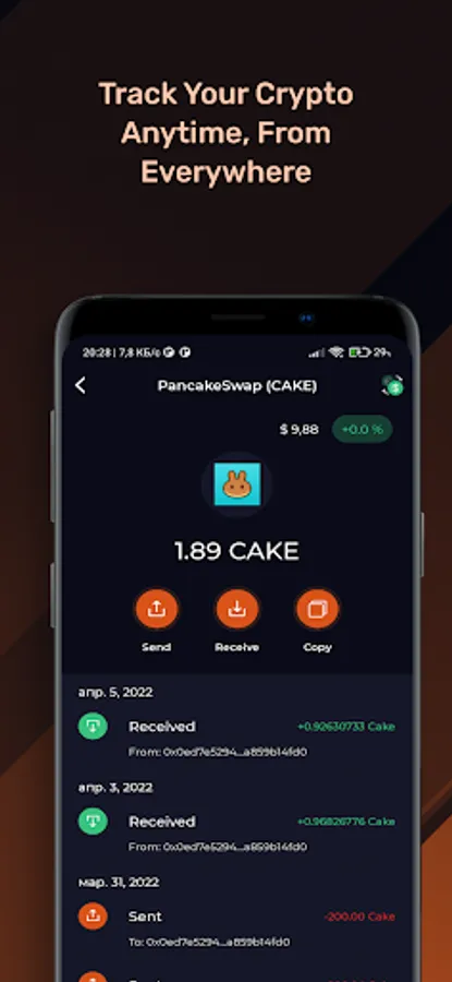 Lunar Wallet is a fast, secure and reliable cryptocurrency cold (non-custodial) wallet. Get full control over your crypto holdings, track, send, and request coins and tokens among multiple supported blockchains. Use DApp browser to various access DeFi platforms, play blockchain games, trade, stake and get new ways for earning and multiplying your crypto assets.