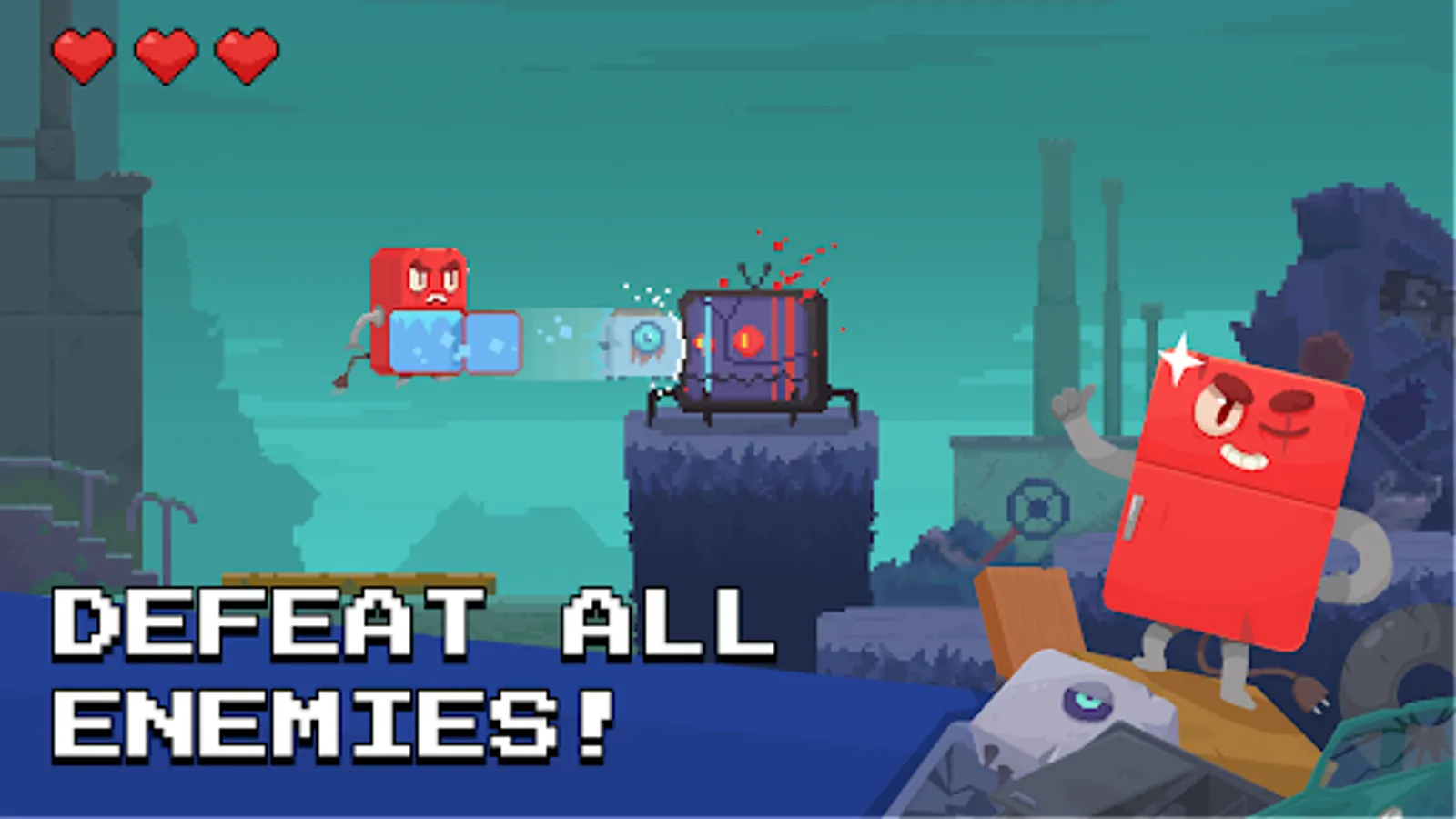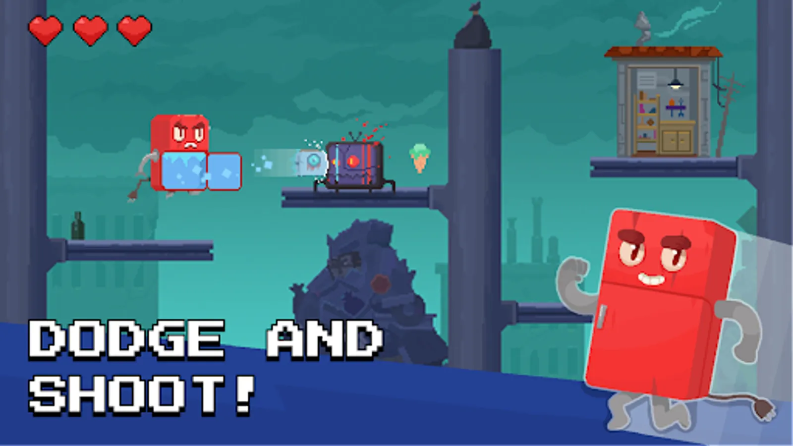 Take control of a fridge that's not only cool but can also run, jump, and fight! Traverse the scrapyard, avoid obstacles, and unleash your fridge's secret weapon: devour enemies and shoot them out as frozen projectiles!