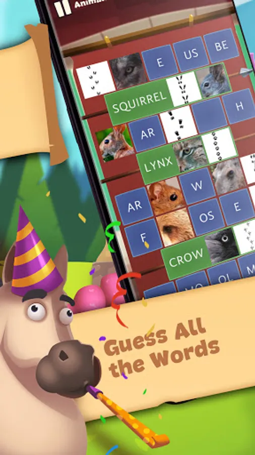 What's the solution? Look at the pictures and partial words, put them all in the right order, line up the tiles, and win!