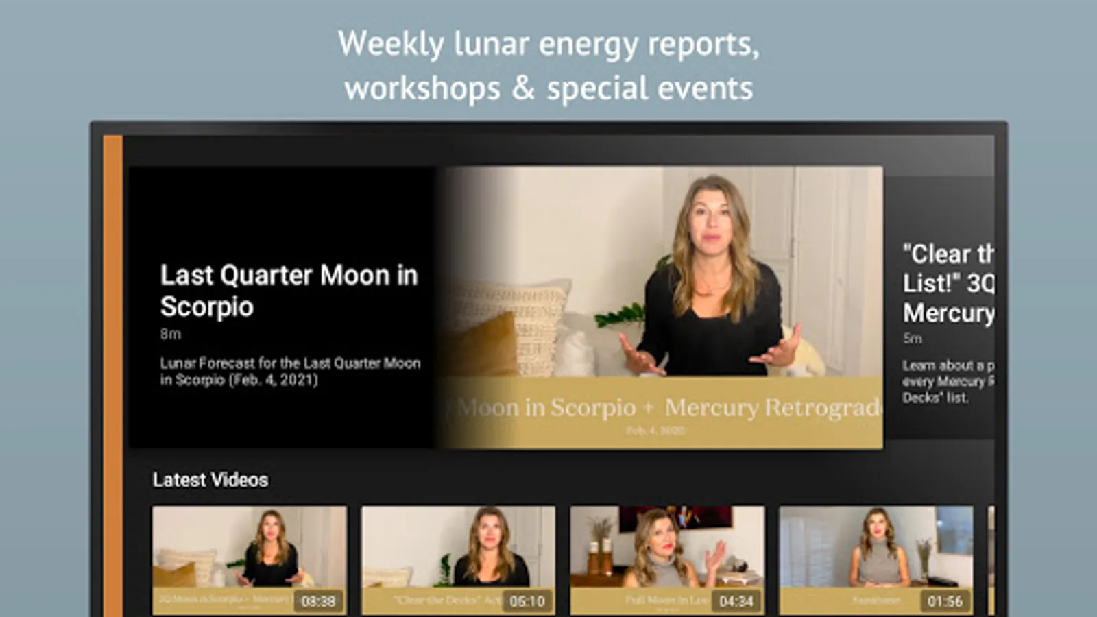 + Deep Dives: These videos are focused on a single mystical topic like "Lunar Astrology Basics," "Mercury Retrograde Explained," or "Crystals 101."