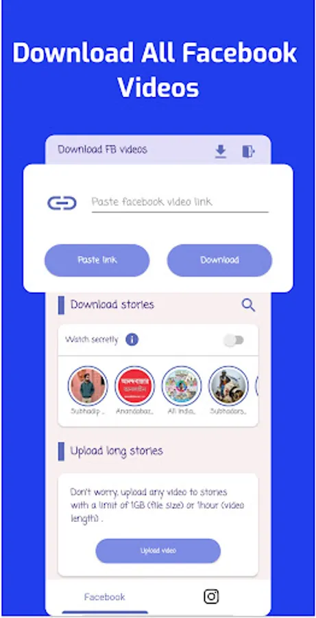 Download all stories in hd quality and download Facebook videos fast and easily.