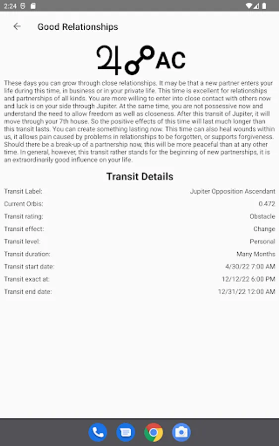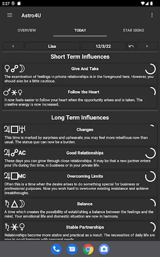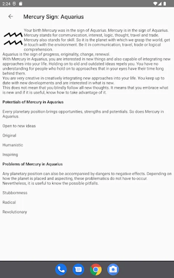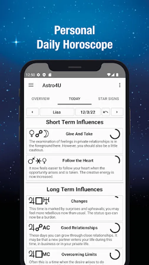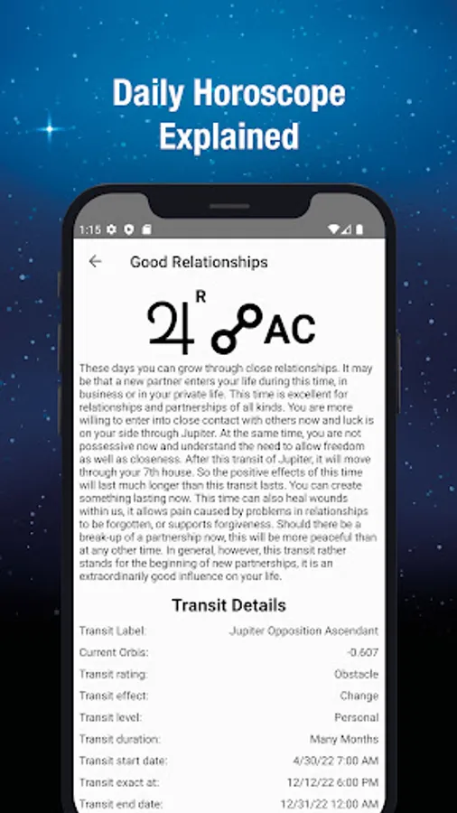 The app provides ready-made interpretation texts and is therefore easy to understand even for laymen without experience and background knowledge in astrology.
