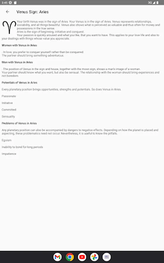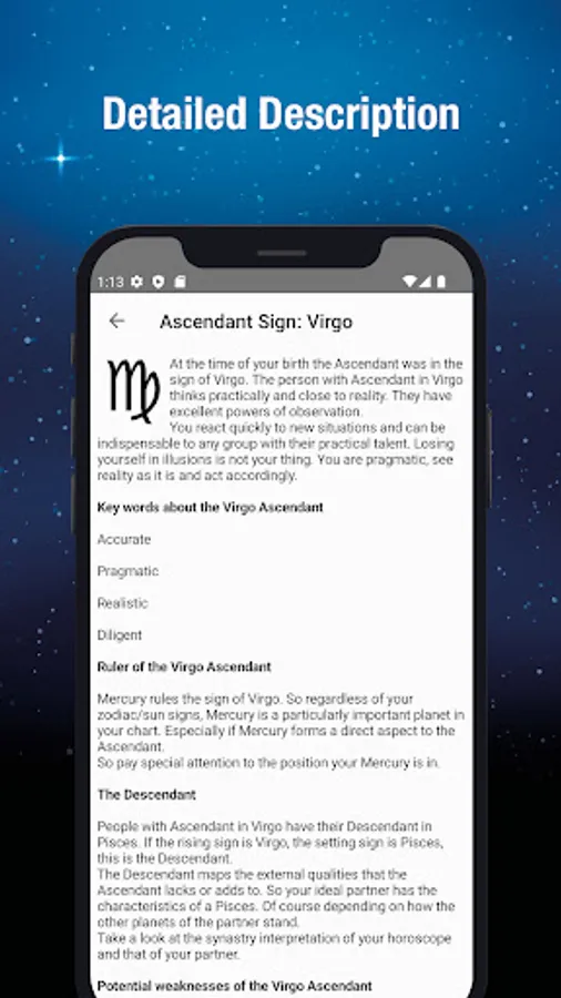 The app shows you detailed explanation texts for the constellations, so the app is easy to understand without prior knowledge of astrology.