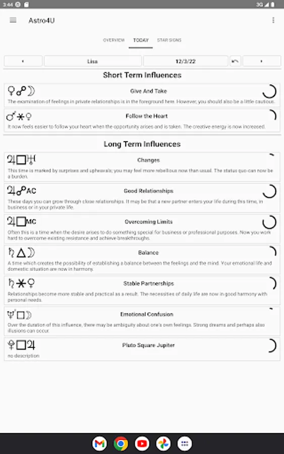 • Interpretation of the personal daily horoscope