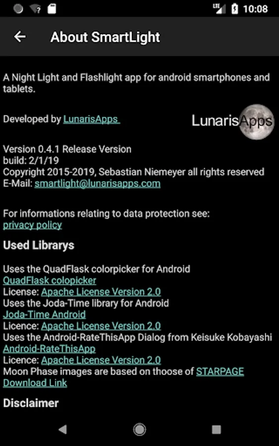 • If you wish, the app will automatically stop completely when the selected time has elapsed and the night light mode is terminated.