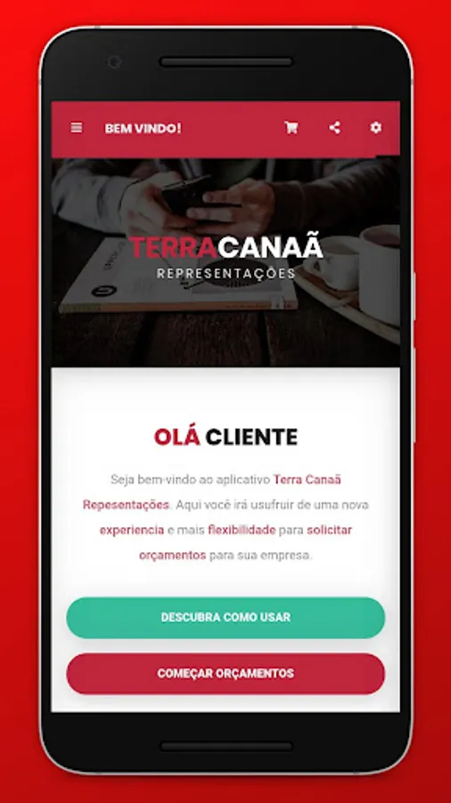 Welcome to the Terra Canaã Repesentações app. Here you will enjoy a new experience and more flexibility to request quotes for your company.