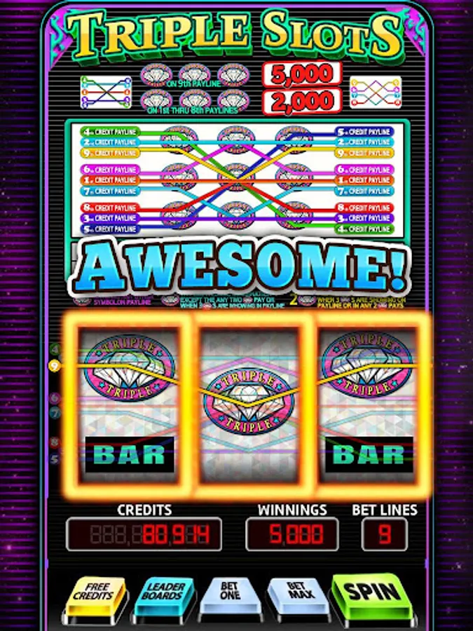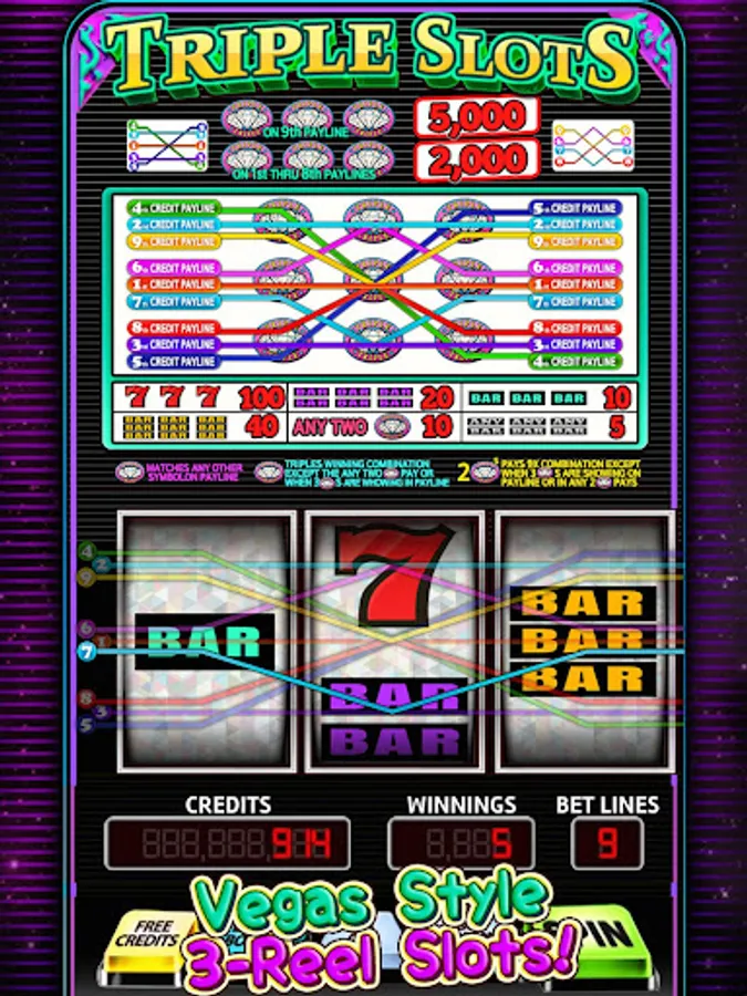 Triple Slots is a mobile version of the classical 3-reel, 9-payline slot machine - perfect for the novices and the experts of Vegas-style slot machines!