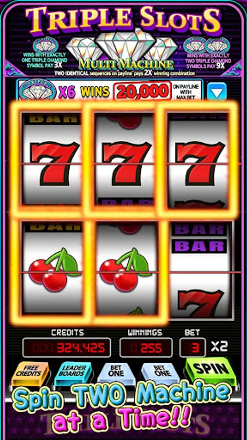 Begin with 300 credits and use the on-screen controls to place your bet. Then, just press ‘Spin’ to spin the reels of two slot machines at a time! Each of two machines gets its own result, but Winning Twins get doubled wins! See what you can win and climb the leaderboard with your total wins. Triple Slots x2 is fun, addictive and free-to-play!