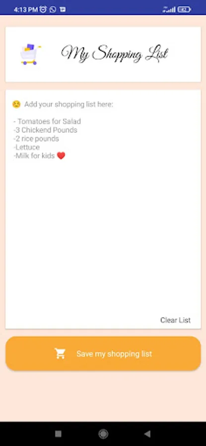 You can create your recipes for each day, add products you will be using for your cooking daily, save money by make your supermarket lists, buy exactly what you need and avoid waste.