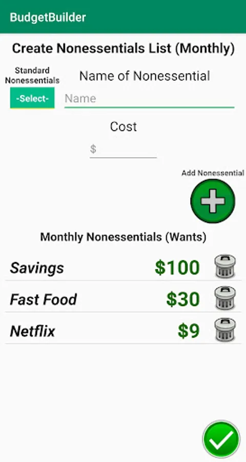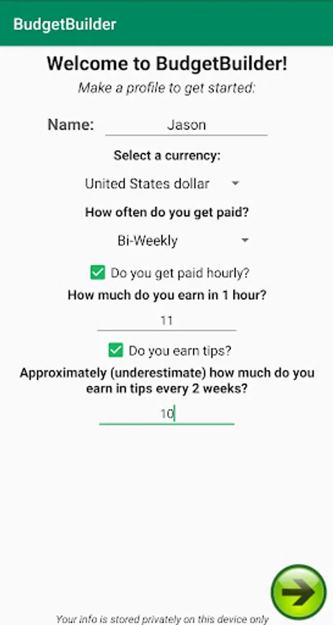 The idea behind BudgetBuilder is to create an effective budget using the least amount of information to keep the budget creation process as simple as possible. This is what sets BudgetBuilder apart from other budgeting apps that can be intimidating or offputting due to requiring an "excessive" amount of information. Granted, those apps may be insanely accurate down to the last cent, but the definition of a budget is: "an estimate of income and expenditure for a set period of time."