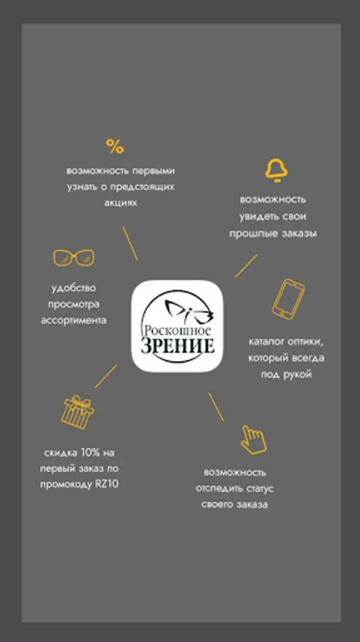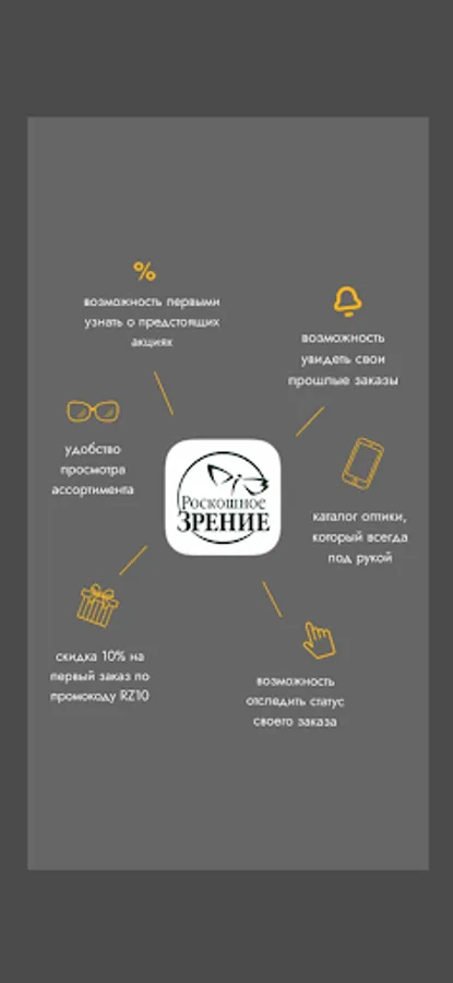 Mobile application - Luxury Eyesight Glasses & Optics - will become your main guide to the world of optics and fashion! Do you like the glasses? Add your favorite models to favorites with one touch. Connect push notifications and be the first to know when promotions are launched. Stay up to date with the hottest new products, personalized bonus card discounts and special offers.