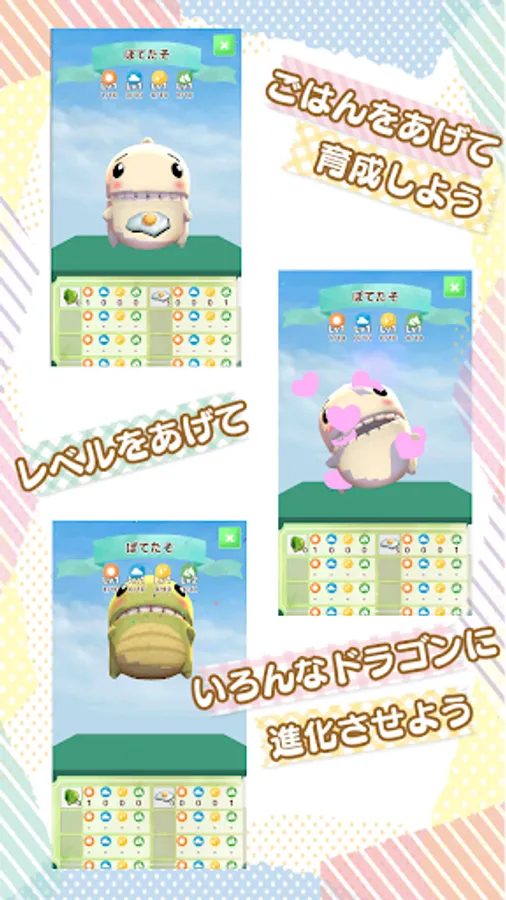 Dragons evolve into various dragons depending on the type of rice they give.
