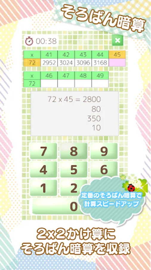 ■ □ ■ 2 digit x 2 digit multiplication is also recorded, and hints for abacus mental arithmetic and Indian calculation can be displayed as hints.