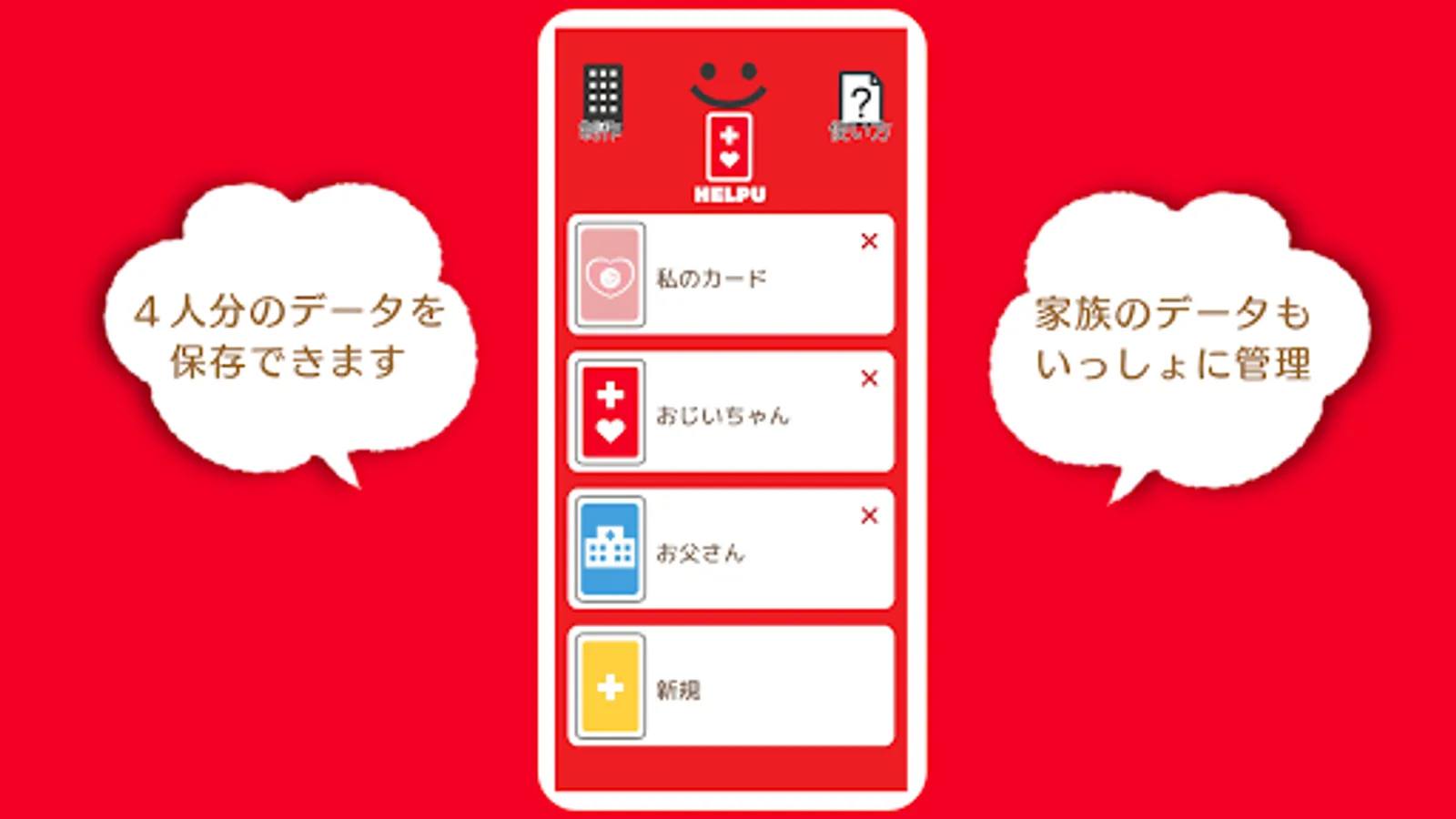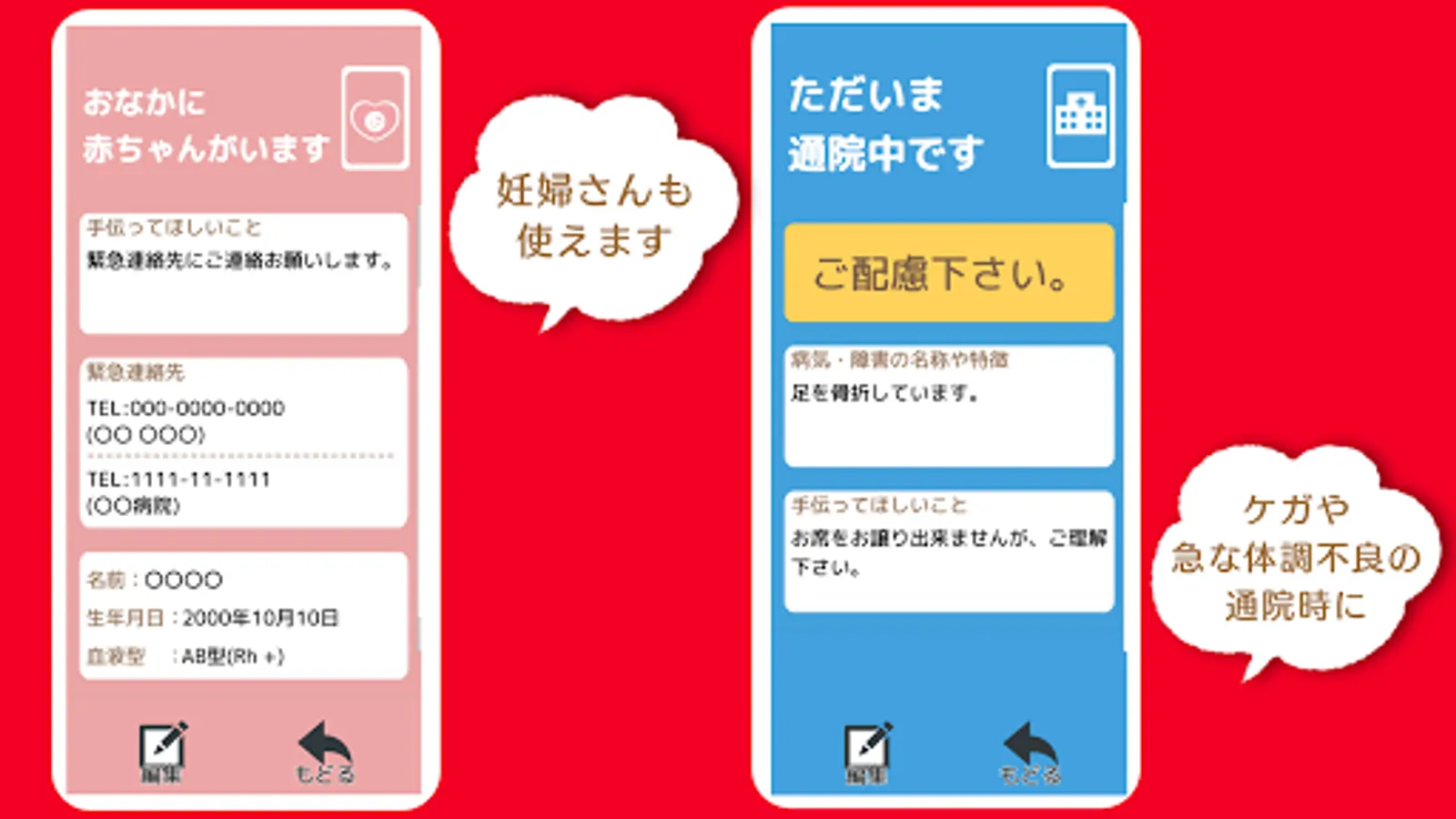 If you save blood type, medicine, allergy information, etc. on the card in advance, you can quickly and easily understand what you need to understand and support when you need it.