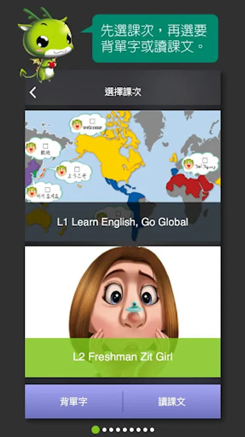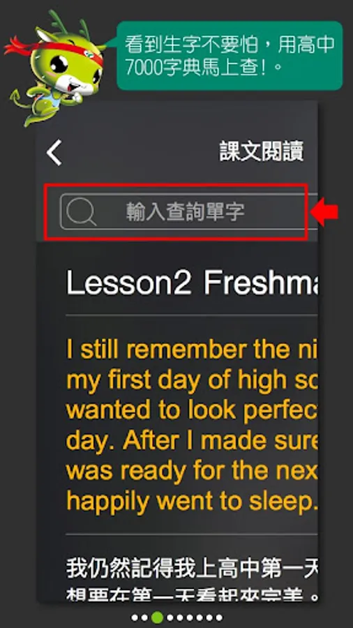 1. 課文隨身聽 →中英對照、段落隨點隨聽,真人發音讀課文。