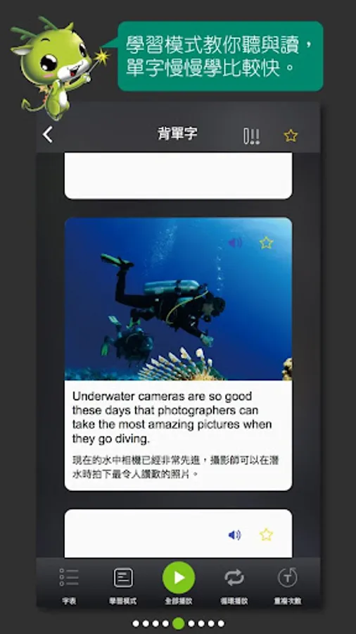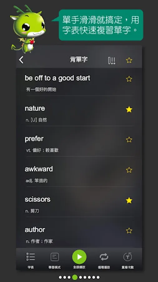 2. 單字隨手背 →字卡學習模式,重要單字可標註星號加強練習。