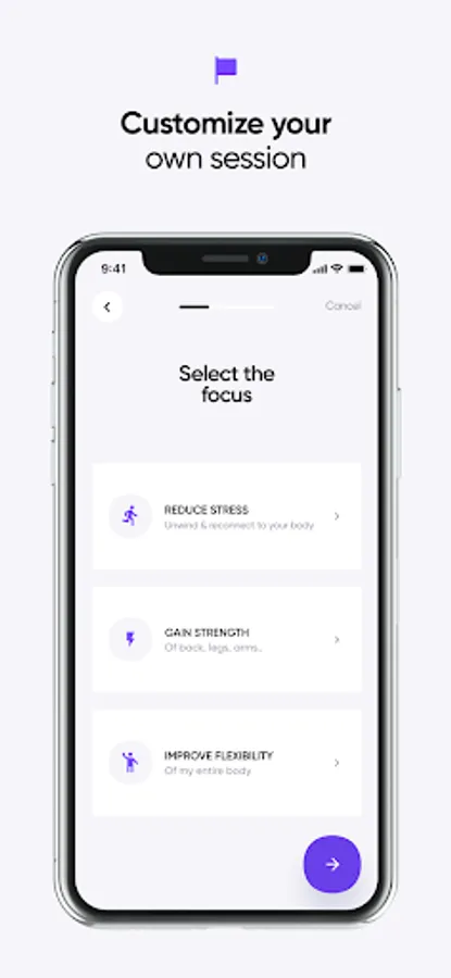 Enjoy personalized sessions, tailored to your needs! Yoga Coach creates your practices based on the following: