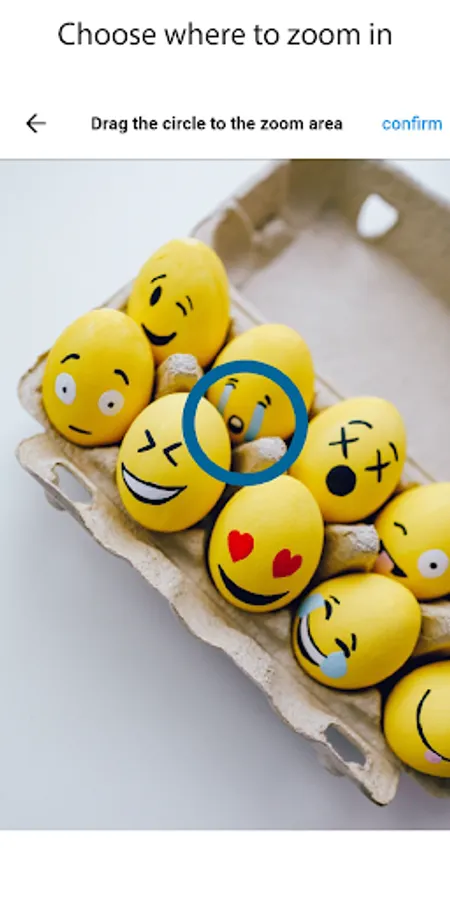Choose the area to zoom in and let the app process the image and deliver the result you expect.